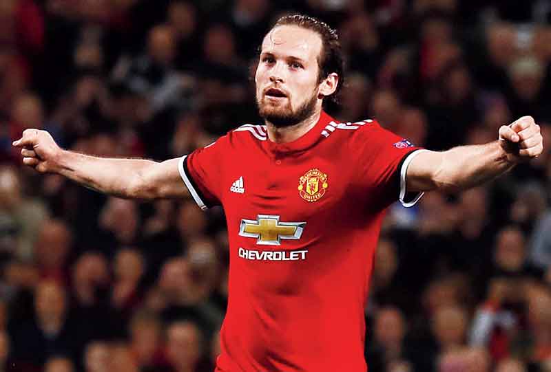 উচ্ছ্বাস: বেনফিকার বিরুদ্ধে গোলের পর ম্যান ইউ তারকা দালে ব্লিন্দ। মঙ্গলবার রাতে ওল্ড ট্র্যাফোর্ডে। ছবি: রয়টার্স।