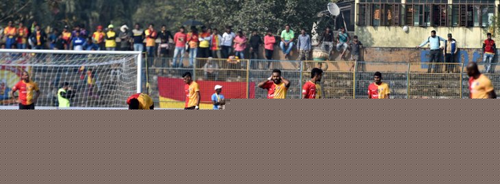 ম্যাচের শেষে হতাশ লাল-হলুদ ফুটবলাররা। ছবি: সুদীপ্ত ভৌমিক।