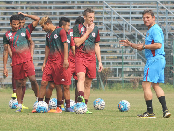 অ্যাওয়ে ম্যাচে কলম্বোকে হারিয়ে ঘরের মাঠেও বাজিমাত মোহনবাগানের। এএফসি কাপের ফিরতি ম্যাচ ২-১ গোলে জিতে নিল সঞ্জয় সেন অ্যান্ড ব্রিগেড। ম্যাচ শুরুর ২৮ মিনিটেই গোল করে মোহনবাগানকে এগিয়ে দিয়েছিল সনি নর্ডি। চোট সারিয়ে এদিনই নামলেন মাঠে। অ্যাওয়ে ম্যাচ তাঁকে ছাড়াই জিতে এসেছিল মোহনবাগান। মঙ্গলবার যে তাঁকে প্রথম দলে রাখা হবে সেই ইঙ্গিত অবশ্য দেননি কোচ সঞ্জয় সেন। ১৮ জনে থাকবেন জানাই ছিল। প্রতিপক্ষের কোচও বলে দিয়েছিলেন সনি খেললে তাঁর জন্য বিশেষ ব্যবস্থা থাকবে। কিন্তু সেই ম্যান মার্কিং কাজে লাগেনি। ডানদিক থেকে ডাফিকে লক্ষ্য করে বল বাড়িয়েছিলেন কাটসুমি। তার পর কয়েক সেকেন্ডের বল হোল্ড আর সনিকে পাস বাড়ানো। তখন পুরোপুরি অরক্ষিত ছিলেন সনি। ২২ গজ দুর থেকে সনির জোড়াল শট সোজা চলে যায় গোলে। গোলকিপার ইমরানের গায়ে লেগে বল চলে যায় গোলে। এগিয়ে যায় মোহনবাগান।
