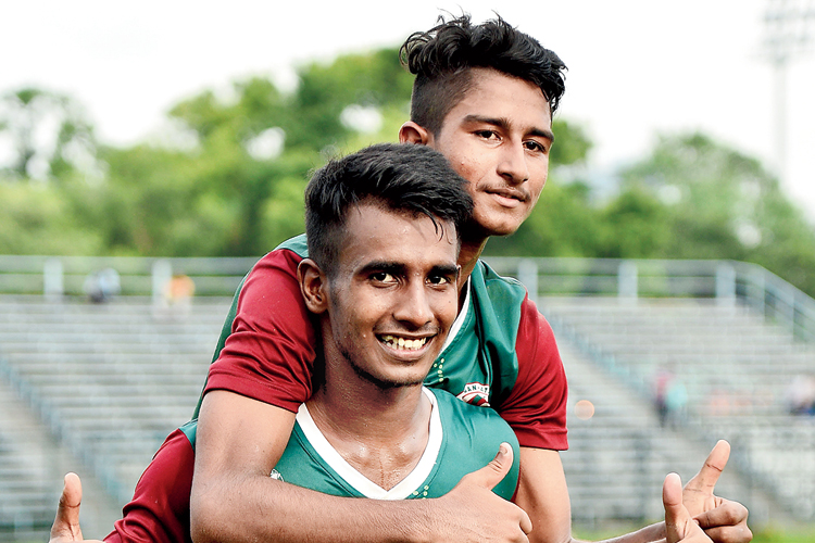 উচ্ছ্বাস: ম্যাচের দুই গোলদাতা সৌরভ ও শুভ। নিজস্ব চিত্র