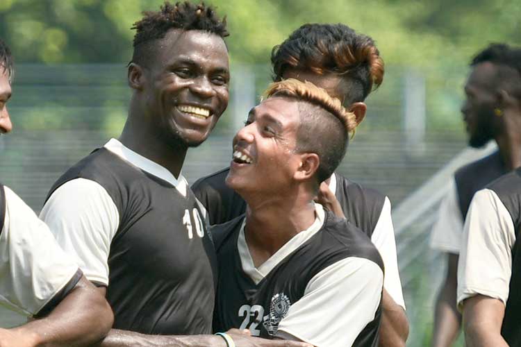 মহড়া: মহমেডানের প্রস্তুতিতে ফিলিপ আজা। ছবি: সুদীপ্ত ভৌমিক।