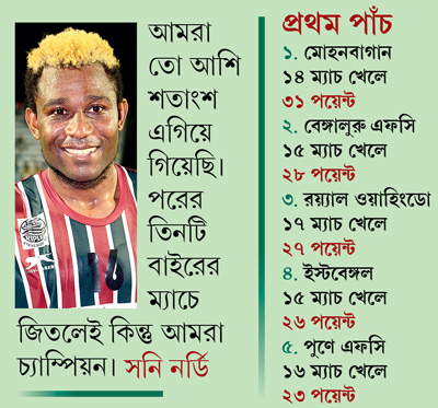 পাঁচ বছর পর কোনও সর্বভারতীয় ট্রফির সামনে দাঁড়িয়ে বাগান। যদি সেটা হয়, তা হলে এর পিছনে অন্যতম কারণ হবে— আত্মবিশ্বাস এবং আত্মবিশ্বাস। শিলংয়ে হেরে যাওয়ার পর সবাই যখন ধরে নিয়েছে সনি-ডেনসনদের চাপে পড়া শুরু হয়ে গেল, তখনই পুণে ম্যাচে অনায়াস জয় ছিনিয়ে আনার পিছনে কাজ করেছে, ‘‘আমরা পারি, আমরাই পারব’’ মনোভাব।