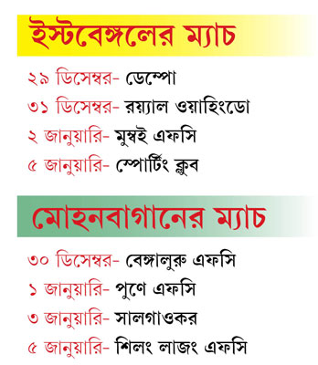 ফেড কাপের আগে মোহনবাগানের মতো ইস্টবেঙ্গল অবশ্য মাঝে সিকিম গোল্ড কাপে অংশ নিচ্ছে না। র্যান্টিরা তাই আবার প্রতিযোগিতামূলক ম্যাচ খেলতে নামবেন ডিসেম্বরের শেষে। ফেড কাপে ইস্টবেঙ্গলের প্রথম ম্যাচ ২৯ ডিসেম্বর। প্রতিপক্ষ গোয়ার ডেম্পো। মোহনবাগান নামবে লাল-হলুদের ঠিক এক দিন পর। ৩০ ডিসেম্বর। বেঙ্গালুরু এফসির বিরুদ্ধে।