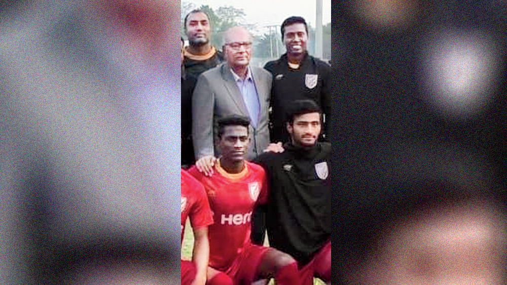 আমন্ত্রিত: অ্যারোজ দলের সঙ্গে সুভাষ। বুধবার। নিজস্ব চিত্র