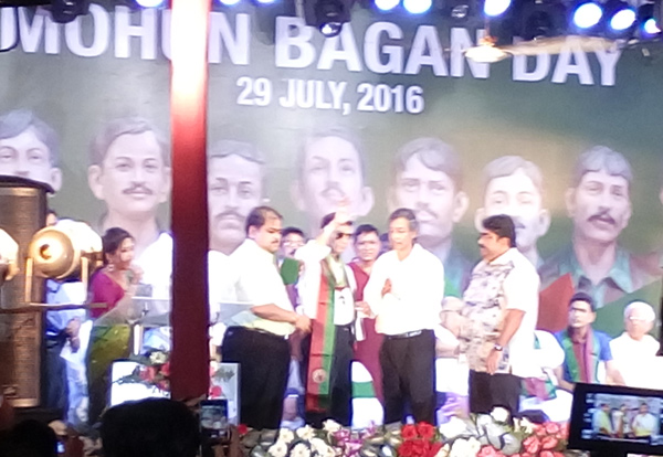 নইমুদ্দিনের হাতে মোহনবাগান-রত্ন তুলে দিচ্ছেন সচিব অঞ্জন মিত্র।