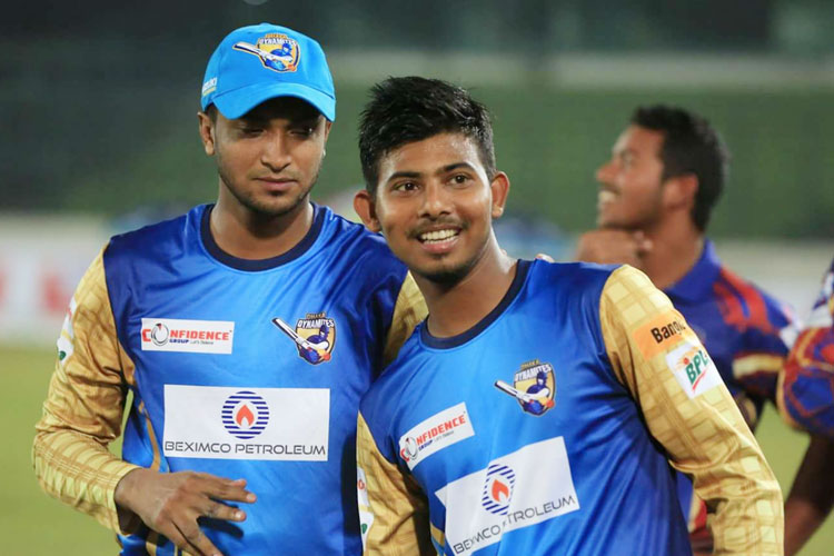 সাকিব আল হাসানের সঙ্গে মোসাদ্দেক হুসেন সৈকত (ডান দিকে)। ছবি: ফেসবুকের সৌজন্যে।