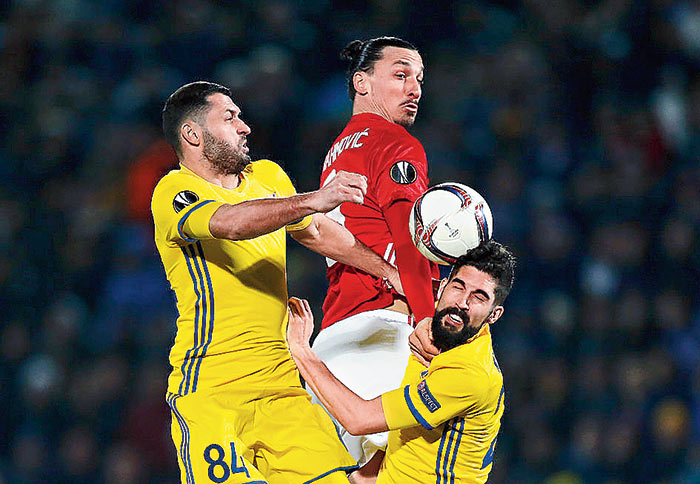 চক্রব্যূহ: রোস্তভ রক্ষণে এ ভাবেই আটকে গেলেন ইব্রাহিমোভিচ। ছবি: রয়টার্স।