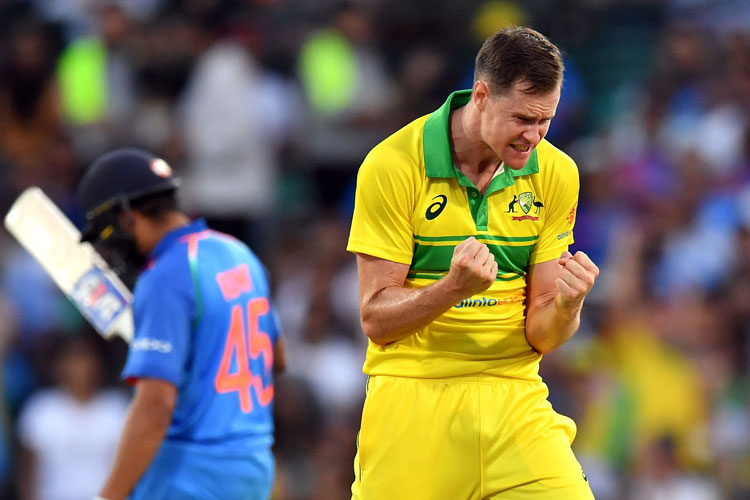 ধোনির উইকেট নিয়ে ভারতের জয়ের আশা কমিয়ে দিলেন জেসন বেহরেনডর্ফ। ছবি: এএফপি।