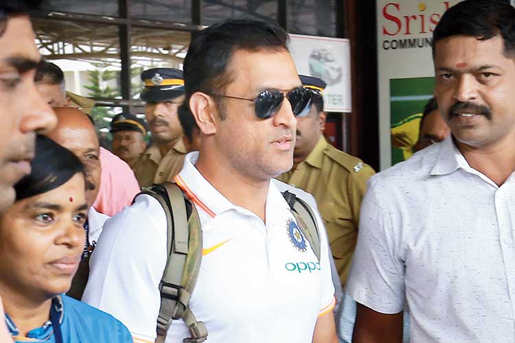 আগমন: মিশন ওয়েস্ট ইন্ডিজ। সিরিজ জয়ের লক্ষ্যে তিরুঅনন্তপুরমে পৌঁছল ভারত। বিমানবন্দরে মহেন্দ্র সিংহ ধোনি। মঙ্গলবার। ছবি: পিটিআই।