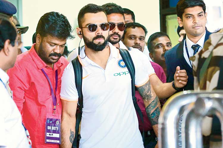 তিরুঅনন্তপুরম বিমানবন্দরে বিরাট কোহালি। ছবি: পিটিআই।