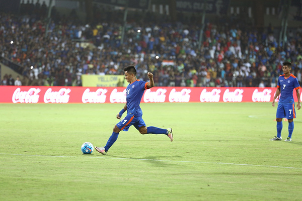 যে ফ্রি কিক থেকে গোল করলেন সুনীল ছেত্রী।
