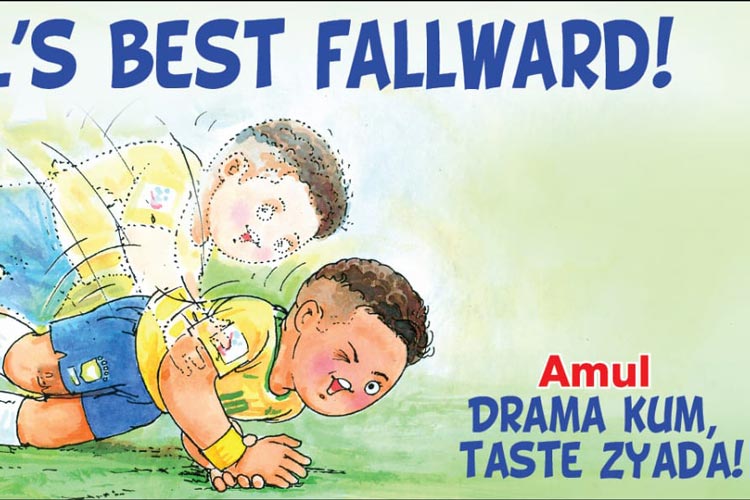 এর সঙ্গে অসংখ্য ফোটো, ভিডিও তো রয়েছেই। সেগুলির অধিকাংশই হাস্যরসে ভরপুর। আমূল আবার রীতিমতো ক্যাচলাইন বানিয়ে ফেলেছে। ‘ড্রামা কম, টেস্ট জাদা’। তার সঙ্গে ‘খুদে’ নেইমারের ‘পতন’-এর স্কেচ। ‘আমুল’-এর টুইটার হ্যান্ডলে সেটা পোস্ট করা হয়েছে।