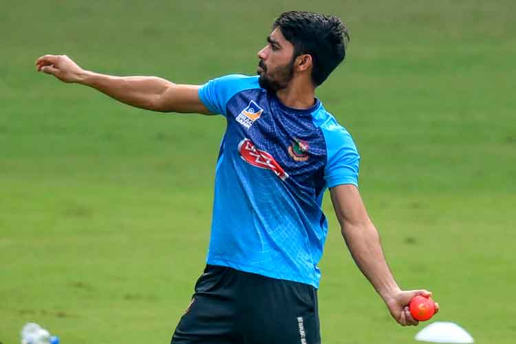 প্রস্তুতি: গোলাপি বলে অনুশীলন মোমিনুল হকের। এএফপি