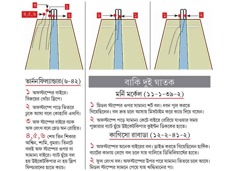 দুর্দান্ত ডেলিভারিতে কোহালির উইকেট তুলে নিয়ে ভারতের স্বপ্নভঙ্গও করলেন ফিল্যান্ডার। তার আগে পর্যন্ত খুব ইতিবাচক ব্যাটিং করছিলেন কোহালি। পিচ ক্রমশ খারাপ হচ্ছে বুঝতে পেরে রান তোলার দিকে নজর দিচ্ছিলেন। দারুণ এনার্জি দেখিয়ে খুচরো রান নিচ্ছিলেন, এক রানকে দুই করছিলেন। বাউন্ডারির বল পেলে ছাড়ছিলেন না। কিন্তু ফিল্যান্ডারের হাতে দু’টো সুইং-ই এত সুন্দর রয়েছে যে, প্রাণবন্ত পিচে তিনিই এই সিরিজে দক্ষিণ আফ্রিকার সবচেয়ে বিপজ্জনক বোলার হয়ে উঠতে পারেন। এখানেও আউটসুইং করাতে করাতে কোহালিকে বোকা বানালেন ক্ষিপ্র ইনসুইংয়ে। ডিআরএস নিয়েও রক্ষা পেলেন না ভারত অধিনায়ক।