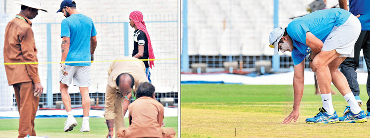 সিএবির তরফে পরে বলা হচ্ছিল, ঘাস একেবারে ছেঁটে ফেলা সম্ভব নয়। যে হেতু নতুন উইকেট তৈরি ‘বার্মুডা গ্রাস’ দিয়ে আর সেই ঘাস একেবারে গোড়া থেকে ছেঁটে ফেলা যায় না। সম্পূর্ণ উপড়ে ফেললে হিতে-বিপরীত হতে পারে। খারাপ হয়ে যেতে পারে উইকেট। বিকেলের দিকে একপ্রস্ত ঘাস ছাঁটাই পর্ব চলল ঠিকই, কিন্তু তার পরেও উইকেটের সবুজ আভা নিশ্চিহ্ন করা যায়নি। বিরাট অবশ্য সাংবাদিক সম্মেলনে এসে বলে দিলেন, ইডেনে এ রকম উইকেট পাবেন জেনেই এসেছিলেন। কারণ আর কিছু নয়, ইডেনে এ রকম পিচই দেখে এসেছেন তিনি। আর বললেন, এটা ভাল ব্যাটিং উইকেট।