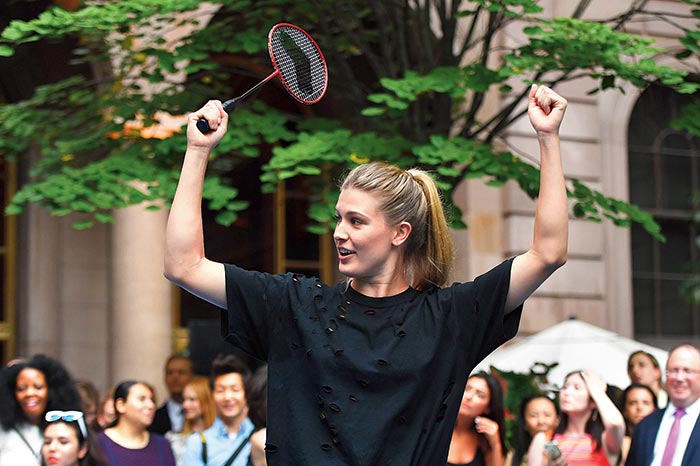 ব্যাডমিন্টনের র্যাকেট হাতে বুশার্ডও।