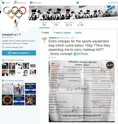 খুব রেগে ভারত অধিনায়ক। মালয়েশিয়া থেকে এশিয়ান চ্যাম্পিয়ন্স ট্রফি জিতে দেশে ফিরছিল ভারতীয় দল। এয়ার এশিয়া হঠাৎই শ্রীজেশের কাছে বেশি জিনিসের জন্য টাকা চেয়ে বসে। বলা হয়ে, যতটা জিনিস নেওয়ার অনুমতি দেওয়া হয়েছে তার থেকে বেশি রয়েছে শ্রীজেশের কাছে। তাতেই রেগে আগুন ভারত অধিনায়ক। কারণ, খেলার সরঞ্জাম ছাড়া আর বাড়তি কিছুই ছিল না তাঁর কাছে। যার জন্য এতদিন কখনও টাকা দিতে হয়নি। শ্রীজেশ এতটাই রেগে যান যে তিনি টুইট করে সে কথা জানান।