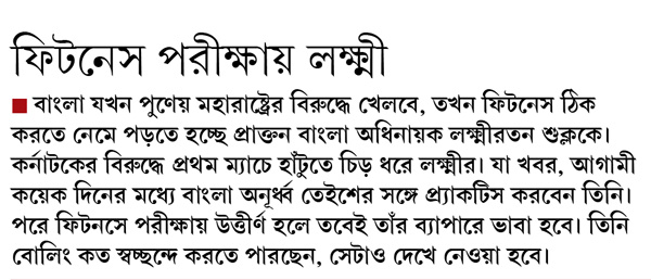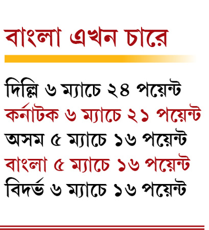 বাংলা টিম ম্যানেজমেন্টের একজন বলছিলেন, এত বড় স্পিনার হয়েও নেটে ‘পার্সেন্টেজ ক্রিকেটের’ ব্যাপার থাকে না। এক থেকে এগারো সবাইকে টানা বল করতে উন্মুখ হয়ে থাকেন। যাতে ম্যাচে পঁয়ত্রিশ-চল্লিশ ওভার করতে অসুবিধে না হয়। আর একটা জিনিস দেখেও এঁরা আশ্চর্য হয়েছেন। বঙ্গ স্পিনার ম্যাচে অনেক সময়ই পয়েন্টে ফিল্ডার না রেখে ওভারের পর ওভার করে যান। ব্যাটসম্যান তাঁকে কাট মারতে পারবে না— এতটাই নাকি আত্মবিশ্বাসী। বিদর্ভের বিরুদ্ধে তাঁর বোলিং-তেজ দেখে ক্রিকেটমহলে বলাবলি চলছে পদ্মাকর শিভালকর, দিলীপ দোশীদের এ সব করতে দেখা যেত।