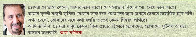 আমি জানি না তোমরা মানুষ কেমন। কিন্তু প্লেয়ার হিসেবে তোমাদের, তোমাদের ফুটবল আমরা অসম্ভব ভালবাসি।