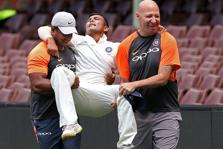কী ভাবে লাগল পৃথ্বীর? অস্ট্রেলীয় বোর্ড দলের ইনিংসের ১৫তম ওভারে অশ্বিনের বল মিড উইকেটের উপর দিয়ে উড়িয়ে দিতে যান ম্যাক্স ব্রায়ান্ট। বাউন্ডারির দিকে উড়ে আসা সেই বলটিই ধরতে গিয়ে বেসামাল হয়ে গিয়ে চোট পান পৃথ্বী। গোড়ালি মচকে যেতেই বাউন্ডারির বাইরে লুটিয়ে পড়েন তিনি। যন্ত্রণায় ছটফট করতে থাকা পৃথ্বীকে প্রায় কোলে চড়িয়ে মাঠের বাইরে নিয়ে আসেন ভারতীয় দলের ফিজিয়ো প্যাট্রিক ফারহার্ট এবং অন্য এক সহকারী। সি়ডনি ক্রিকেট গ্রাউন্ড থেকে তাঁকে সোজা হাসপাতালে নিয়ে যাওয়া হয় গোড়ালিতে স্ক্যান করানোর জন্য। সেই স্ক্যানের রিপোর্ট পাওয়ার পরেই ডাক্তাররা জানিয়ে দেন, প্রথম টেস্টে তাঁর পক্ষে খেলা অসম্ভব।