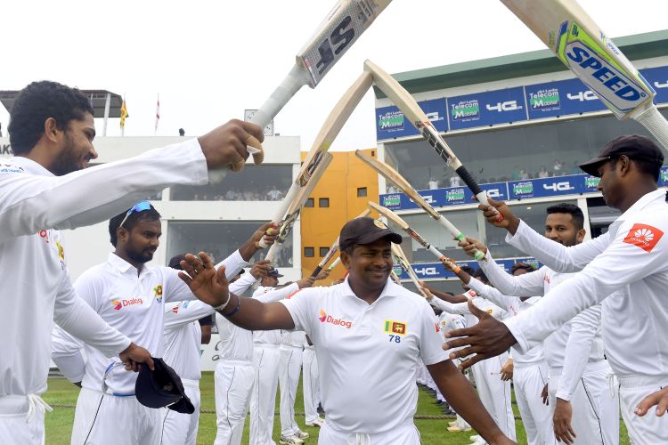 বিদায়ী টেস্টে সংবর্ধনা দেওয়া হচ্ছে রঙ্গনা হেরাথ। ছবি: এএফপি।