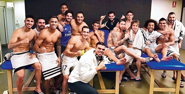 মধ্যমণি রোনাল্ডো। এল ক্লাসিকোর পর রিয়াল ড্রেসিংরুম।