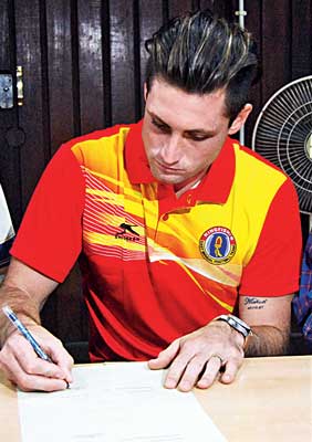 কলকাতায় সই করেই ডার্বি খেলতে চললেন ইস্টবেঙ্গলের নতুন বিদেশি ক্রিস পেইন। -শঙ্কর নাগ দাস