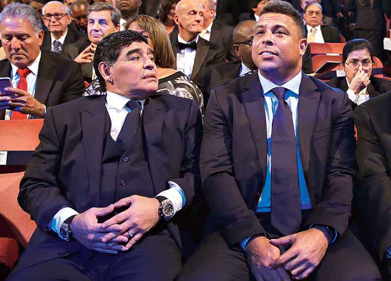 মারাদোনার পাশে ব্রাজিলের রোনাল্ডো। ছবি: এএফপি