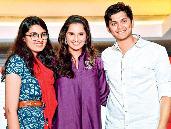 সানিয়া সঙ্গে বোন আনম এবং বোনের স্বামী আকবর রশিদ।