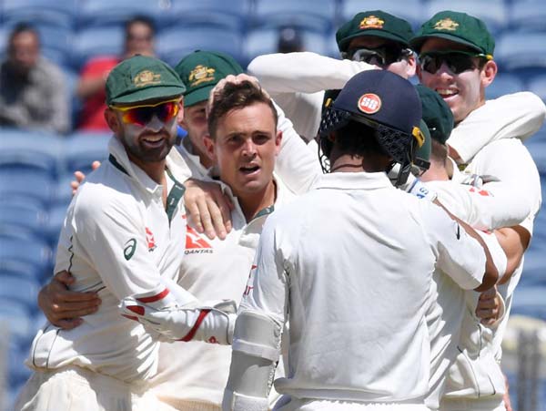 অথচ সকালটা কিন্তু মোটেই খারাপ হয়নি ভারতীয়দের। মারমুখী স্টার্ককে সকাল সকাল আউট করেন অশ্বিন। এর পর লাঞ্চে ভারত যখন ৭০/৩, তখনও এই বিপর্যয়ের আশঙ্কা করেননি কেউই। লাঞ্চের পর যেন রুদ্রমূর্তি ধরে অজি বোলাররা। সঙ্গে ছিল পুণের অদ্ভুত চরিত্রের পিচ। যে পিচকে প্রথম দিনই ঘূর্ণি আখ্যা দিয়েছিলেন বেশির ভাগ বিশেষজ্ঞ। স্টার্কদের বলের কোনও হদিশই পাচ্ছিলেন না ভারতীয় ব্যাটসম্যানরা। হদিশ পাচ্ছিলেন না নবাগত বাঁহাতি স্পিনার ওকিফেরও। একাই ছয় উইকেট নিলেন অজি বাঁহাতি স্পিনার। স্টার্ক নিলেন ২টি।