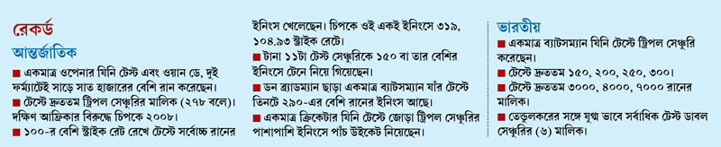 সন্ধের দিকে এক টিভি চ্যানেলে প্রাক্তন অধিনায়ক সৌরভ বলছিলেন যে, তিনি সহবাগের সিদ্ধান্তে অবাক নন। ‘‘অনেক দিন দেশের হয়ে খেলেনি। বসয়ও হচ্ছে। শুধু একটাই দুঃখ থাকবে যে, মাঠে ওর শেষটা হল না।’’ তাঁকে বলা হল বিদায়ী সাক্ষাৎকারে সহবাগ বলে গিয়েছেন যে সৌরভ গঙ্গোপাধ্যায় না থাকলে তাঁর পক্ষে সম্ভব হত না আজকের বীরেন্দ্র সহবাগ হওয়া। শুনে সৌরভের উত্তর, ‘‘ও নিজেও তো গ্রেট ছিল। অ্যাবসোলিউট জিনিয়াস। আমাকে ও দেখিয়েছিল যে, ব্যাটিং অর্ডার বলে কিছু হয় না। আর ও রান পেলে আমার, সচিন, দ্রাবিড় সবার জীবন সহজ হয়ে যেত। কী অবিশ্বাস্য সব ইনিংস খেলেছে বীরু। টেস্টে ডাবল সেঞ্চুরি করেছে এক দিনে। মুলতানে পাকিস্তানের বিরুদ্ধে তিনশো করেছে। ওয়ান ডে-তে ডাবল সেঞ্চুরি। মাঝে মাঝে নন-স্ট্রাইকার এন্ডে ওর ব্যাটিং দেখার সময় চোখ বন্ধ করে দিতাম।’’