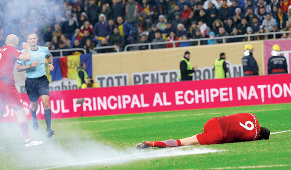 রবার্ট লেভানডস্কি। শব্দবাজিতে জখম। বুখারেস্টে।