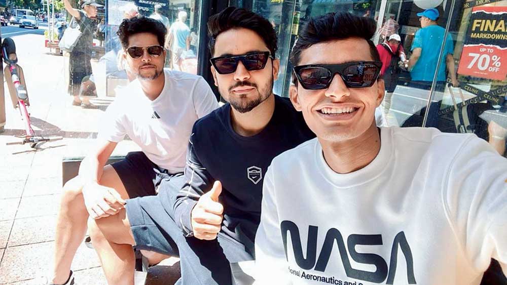 শনিবার অকল্যান্ড শহর ঘুরে দেখছেন কুলদীপ, চহাল, ঋষভরা। ছবি: টুইটার।