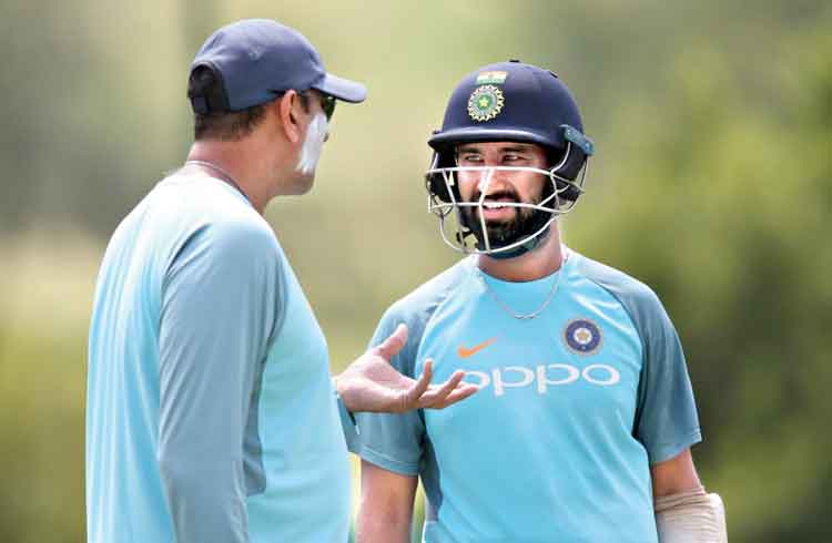 মহড়া: সিরিজের শেষ টেস্টে নামার আগে রবি শাস্ত্রীর ক্লাসে চেতেশ্বর পূজারা।