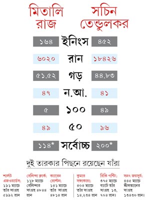 মিতালিকে নিয়ে তাঁর কোচ আরএসআর মুর্তি তাঁর ছাত্রীকে নিয়ে বলেছেন, ‘‘মিতালি, সচিন, এদের তৈরি করা যায় না। এরা জন্মগত প্রতিভা।’’ সেই ২০০০ সালে মিতালি রেলওয়েজে যোগ দেওয়ার পর থেকে তাঁকে দেখছেন মুর্তি। বলছিলেন, ‘‘এই সাফল্যের পিছনে অনেক পরিশ্রম, অনেক আত্মত্যাগ আছে। না হলে কেউ এই জায়গায় আসতে পারে না।’’