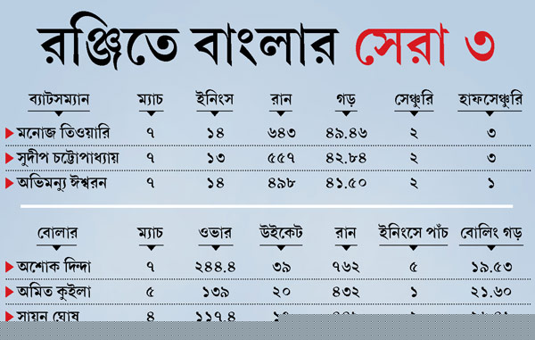 অধিনায়ককে কেউ কেউ তবু ‘বেনিফিট অব ডাউট’ দিতে চান। বাংলা টিমের সঙ্গে জড়িত কেউ কেউ বললেন, অধিনায়ক মনোজের এখনও কোনও পরিবর্ত নেই। ব্যাটিংয়ের গুরুভার এ বছর সুদীপ চট্টোপাধ্যায়ের সঙ্গে তাঁকে সামলাতে হয়েছে। আর বোলার নির্বাচনের দায় পুরো মনোজের উপর চাপানো অন্যায়। এটা বুঝতে হবে যে, কুইলা বা সায়ন টানা আটটা রঞ্জি ম্যাচ খেলার ফিটনেস রাখেন না। ঘুরিয়ে-ফিরিয়ে তাঁদের খেলাতে হয়।
