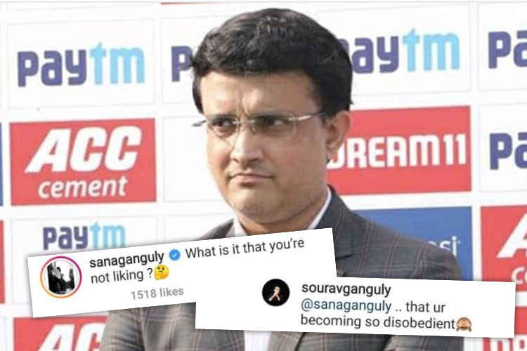 মেয়ের প্রশ্নের জবাব মজার ছলেই দেন সৌরভ। লেখেন, ‘তুমি অবাধ্য হয়ে উঠছ তাই।’ সানা তাঁর বিখ্যাত বাবাকে লেখেন, ‘তোমার থেকেই তো শিখছি।’ এর পরেই হাসির ইমোজি দেন সানা।