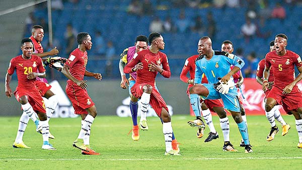 উৎসব: অনূর্ধ্ব-১৭ বিশ্বকাপ তো কী! বড়দের মতো সেলিব্রেশন দেখা যেতে পারে। এ দিন যেমন জেতার পর অভিনব নাচ দেখাল ঘানা। ছবি: পিটিআই।