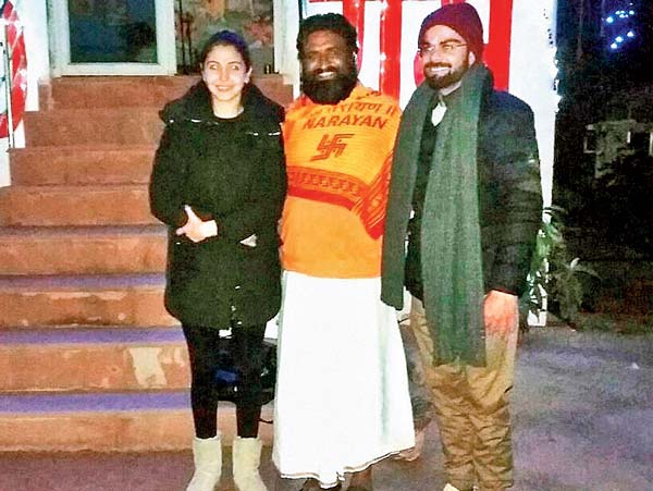 হরিদ্বারে এক আশ্রম-গুরুর সঙ্গে বিরাট-অনুষ্কা।-পিটিআই