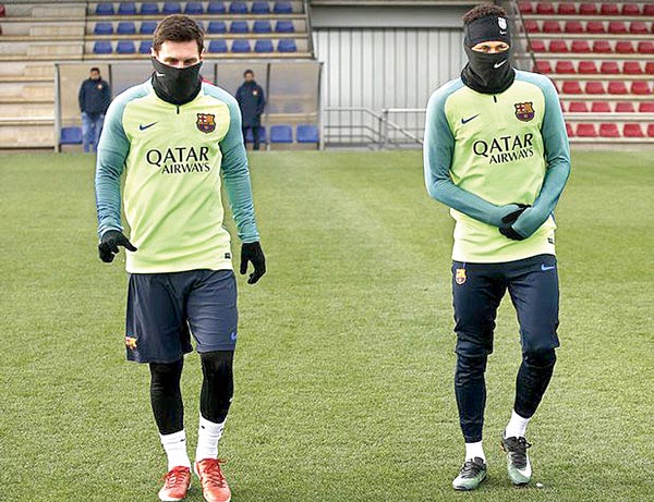 নেইমারকে নিয়ে বার্সা প্র্যাকটিসে।