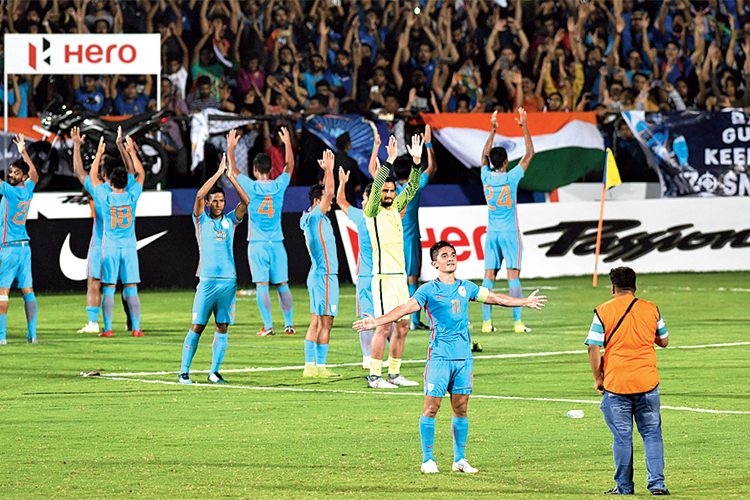 সুনীলদের এই জয় এশিয়ান কাপের আগে নতুন স্বপ্ন দেখাচ্ছে। ছবি: পিটিআই।