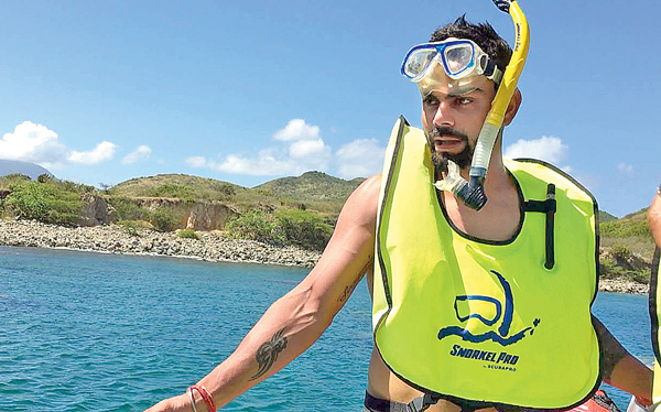 ক্যারিবিয়ান সাগরে ডুব দেওয়ার আগে বিরাট কোহালি।