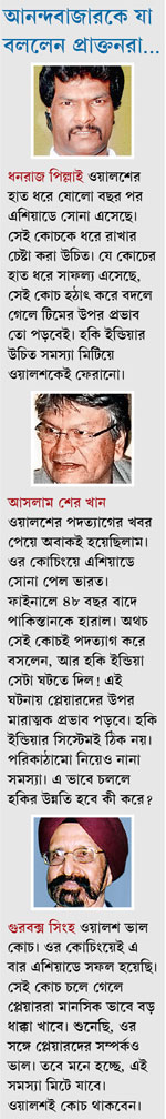 ষাট বছর বয়সি বিখ্যাত অস্ট্রেলীয় হকি অলিম্পিয়ান ওয়ালশ দক্ষিণ পার্থের ১৯ নম্বর গার্ডেন স্ট্রিটে তাঁর বাড়ি থেকে দিল্লিতে সাই-কে যে ই-মেল পাঠিয়ে ভারতীয় হকি দলের চিফ কোচের পদ থেকে নিজের ইস্তফা দেওয়ার চূড়ান্ত সিদ্ধান্ত জানিয়েছেন, তাতেই স্পষ্ট হয়ে গিয়েছে, মাঠের ভেতর যতই ভারতীয় হকির সুদিন ফিরুক না কেন, মাঠের বাইরে হকি ইন্ডিয়া আর সাইয়ের ঝগড়া সেই আগের মতোই তীব্র। যা ভারতের খেলাধুলোয় আমলাতন্ত্রের জলজ্যান্ত প্রমাণ। ১৯ অক্টোবরের ই-মেলে ওয়ালশ লিখেছেনও তাই‘ভারতের ক্রীড়া-আমলাতন্ত্রের ফাঁসে পড়ে আমার পক্ষে ভারতীয় হকি দলের ব্যাপারে বিভিন্ন উন্নতিমূলক সিদ্ধান্ত নিতে এবং সিস্টেম চালু করতে প্রচণ্ড অসুবিধে হচ্ছে। আপনাদের দেশের খেলাধুলোর আমলাতান্ত্রিক সিস্টেম পেশাদার ভাবেও আমার সমস্যার সমাধান ঘটাতে ব্যর্থ। সে জন্য আমার পক্ষে এই মুহূর্ত থেকে ভারতীয় হকি দলের চিফ কোচ থাকা সম্ভব হচ্ছে না। তার জন্য আমার চুক্তির সমস্ত ধারা মেনে নিতেও আমি রাজি।’