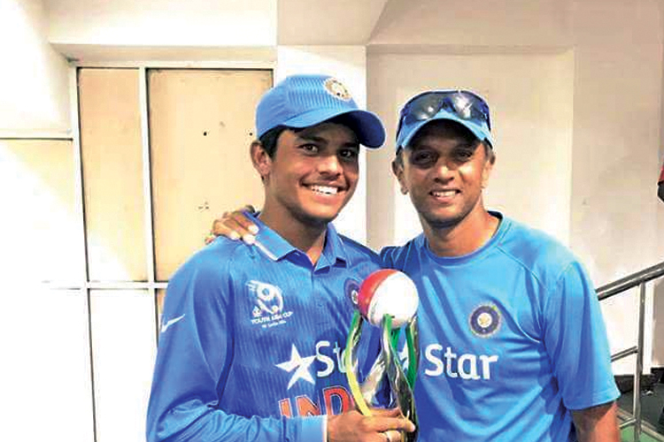 রাহুল দ্রাবিড়ের সঙ্গে প্রিয়ম গর্গ। ছবি টুইটার থেকে নেওয়া।