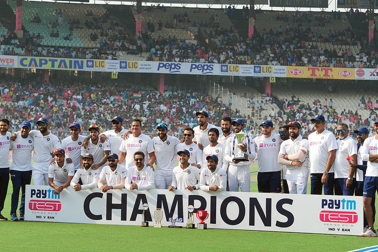 এ দিন ইডেন টেস্ট এক ইনিংস ও ৪৬ রানে জিতে নিল ভারত। সিরিজ জিতল ২-০। পাশাপাশি নতুন করে লেখা হল রেকর্ড বইও। যেমন, কোহালির নেতৃত্বে টানা সাতটি টেস্ট জয়ের রেকর্ড গড়ল ভারত। প্রথম দল হিসেবে টানা চারটে টেস্ট জিতল ইনিংসে। টেস্ট বিশ্ব চ্যাম্পিয়নশিপেও বাকিদের থেকে অনেক এগিয়ে কোহালির দল। এ দিন ঘরের মাঠে আরও একটি অভূতপূর্ব ব্যাপার দেখা গিয়েছে। বাংলাদেশের ১৯টি উইকেটের (মাহমুদুল্লা দ্বিতীয় ইনিংসে ব্যাট করেননি) সব ক’টি পেয়েছেন ভারতীয় পেসাররা!