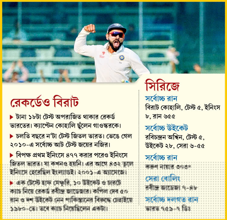 কেন জানি না মনে হচ্ছে, এই একটা সিরিজ ভারতীয় টেস্ট টিমের রোড-ম্যাপটাই পাল্টে দিয়ে গেল। কোহালিরা এখন বিদেশে গিয়ে আর হয়তো উইকেট নিয়ে ভাববে না। বরং ভাববে, দেশে আমরা টার্নার ছাড়াই জিতেছি। জিততে আমাদের পিচ লাগে না। তার উপর টিম। আমার তো মনে হয়, ভারত শুধু বিশ্বসেরা টেস্ট টিম নয়। আমাদের রিজার্ভ বেঞ্চও টেস্টে বিশ্বসেরা। অজিঙ্ক রাহানের বদলে করুণ নায়ার ঢুকল, আর ঢুকে তিনশো করে রাহানেকেই চাপে ফেলে দিল! জয়ন্ত যাদব লোয়ার অর্ডারে ব্যাট করতে নেমে ইতিহাস করে গেল। ঋদ্ধিমান সাহা চোট পেল, পার্থিব পটেল এসে ঠিক খেলে দিল।