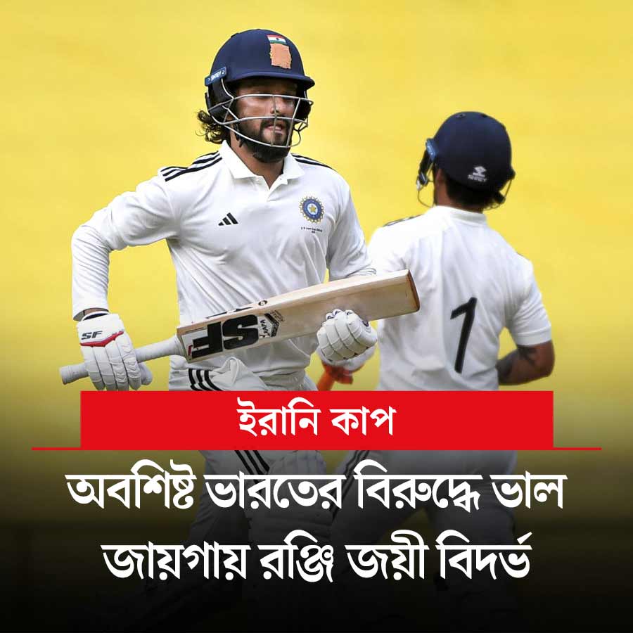 বড় অঘটন না ঘটলে এ বারের ইরানি কাপ জেতার দিকে এগোচ্ছে রঞ্জি চ্যাম্পিয়ন বিদর্ভ। অবশিষ্ট ভারতের বিরুদ্ধে তারা ভাল জায়গায়। তৃতীয় দিন অবশিষ্ট ভারতের ইনিংস শেষ হয় ২১৪ রানে। বিদর্ভ দিনের শেষে ২ উইকেটে ৯৬। সব মিলিয়ে বিদর্ভ ২২৪ রানে এগিয়ে। পাঁচ দিনের ম্যাচে আজ চতুর্থ দিনের খেলা শুরু সকাল ৯:৩০ থেকে।