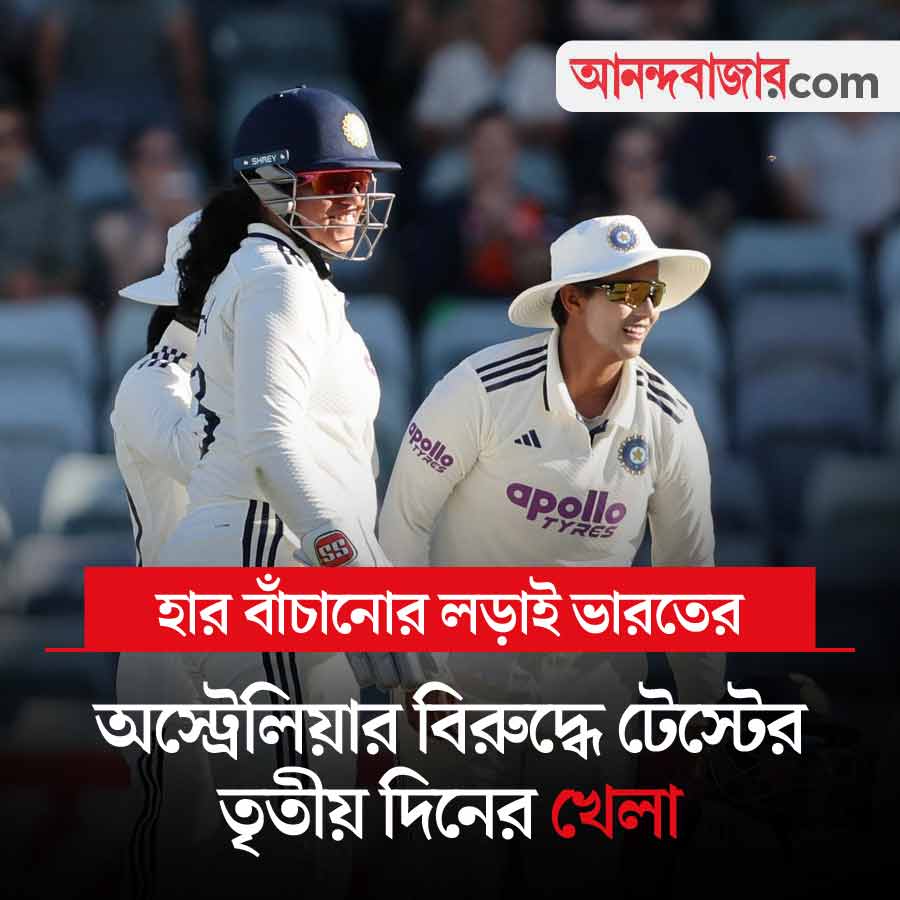 ভারত বনাম অস্ট্রেলিয়ার মেয়েদের টেস্টের আজ তৃতীয় দিনের খেলা। পার্থের ওয়াকায় এটি চার দিনের ম্যাচ। সিরিজ়ের এটিই একমাত্র টেস্ট। দ্বিতীয় দিনের শেষে চাপে ভারত। প্রথম ইনিংসে অস্ট্রেলিয়া ১২৫ রানের লিড নিয়েছে। সায়লী সাথঘারে ৪ উইকেট নিলেও ভারতীয় বোলারদের শাসন করেছেন অ্যানাবেল সাদারল্যান্ড। তিনি ১২৯ রান করেছেন। দ্বিতীয় ইনিংসে ভারত দিনের শেষে ৬ উইকেটে ১০৫ রান তুলেছে। ইনিংস হার এড়াতে এখনও ২০ রান দরকার। আজ খেলা শুরু সকাল ১০:৫০ থেকে। খেলা দেখা যাবে স্টার স্পোর্টস চ্যানেল ও জিয়োহটস্টার অ্যাপে।
