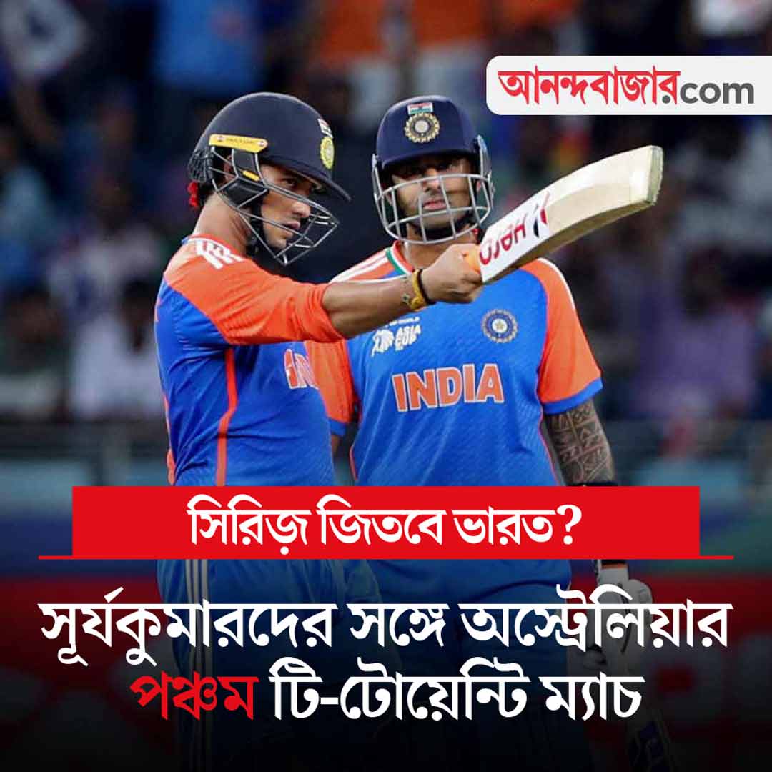 আজ ভারত বনাম অস্ট্রেলিয়া পঞ্চম এক দিনের ম্যাচ। টি-টোয়েন্টি সিরিজ়ের এটিই শেষ ম্যাচ। চার ম্যাচের শেষে ভারত ২-১ ফলে এগিয়ে রয়েছে। ফলে সূর্যকুমার যাদবদের আর সিরিজ় হারার সম্ভাবনা নেই। অস্ট্রেলিয়াকে জিততেই হবে। ব্রিসবেনে খেলা। বৃষ্টির পূর্বাভাস রয়েছে। এই ম্যাচ না হলে ভারত সিরিজ় জিতে যাবে। খেলা দুপুর ১:৪৫ থেকে। খেলা দেখা যাবে স্টার স্পোর্টস চ্যানেল ও জিয়োহটস্টার অ্যাপে।
