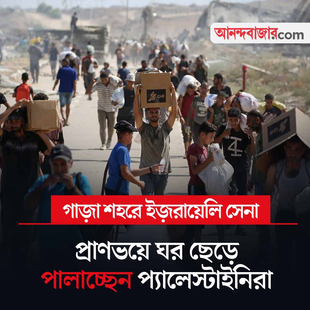 আকাশপথে হামলা আগে থেকেই চলছিল, এ বার স্থলপথেও গাজ়া শহরের ভিতরে ঢুকে পড়েছে ইজ়রায়েলি সেনা। হামাস নির্মূলের অভিযানে গাজ়ায় ধারাবাহিক ভাবে বোমাবর্ষণ করে যাচ্ছে ইজ়রায়েলি বাহিনী। গাজ়া শহরের বাসিন্দাদের এলাকা থেকে সরে যেতে বলেছে তারা। প্রাণভয়ে শহর ছেড়ে পালাতে শুরু করেছেন হাজার হাজার প্যালেস্টাইনি। ইজ়রায়েলি সেনার আগ্রাসী অভিযানে গাজ়া ভূখণ্ডের কী পরিস্থিতি, সে দিকে নজর থাকবে আজ।